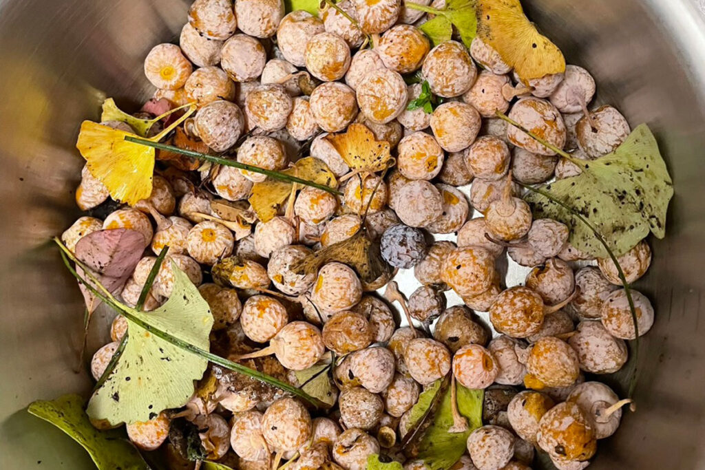 秋になると、道に銀杏が落ちていて臭い。独特の匂いがする。「いつか拾ってみよう」と思いつつ、毎年そのまま過ぎていたけど、今年はなぜか拾ってみたくなった。