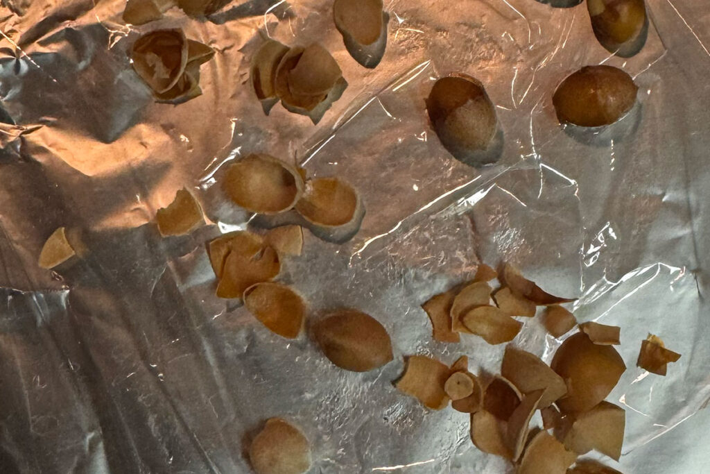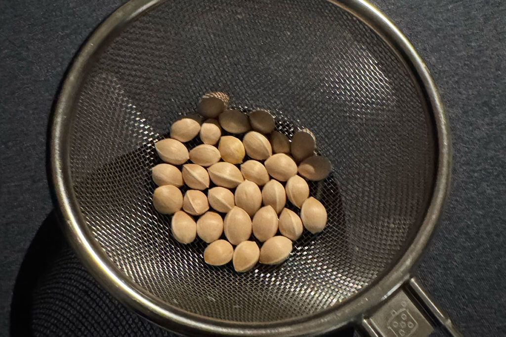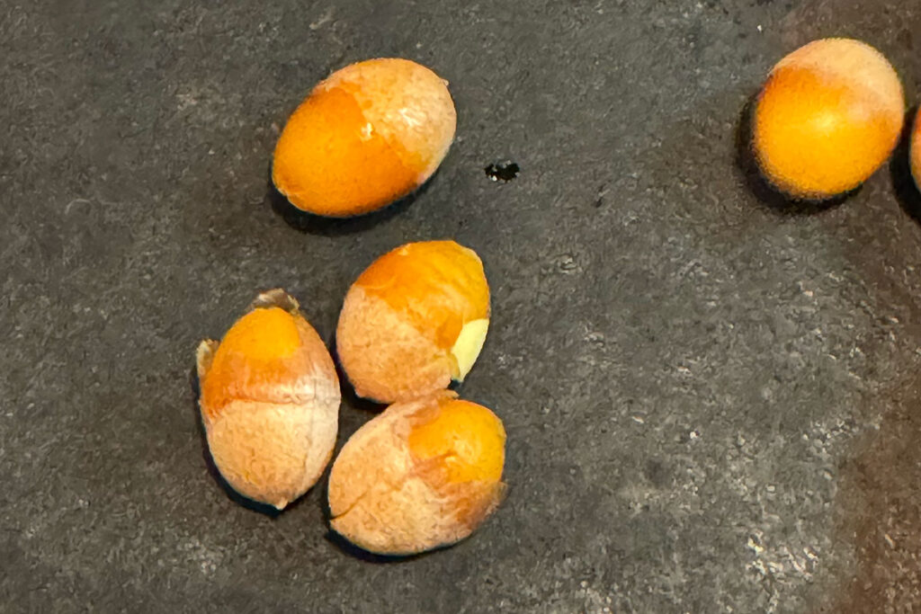 雨上がりだったんですが、家に持ち帰ると外側は柔らかく、手で押すと中の種がスルッと出てきました。意外と簡単。