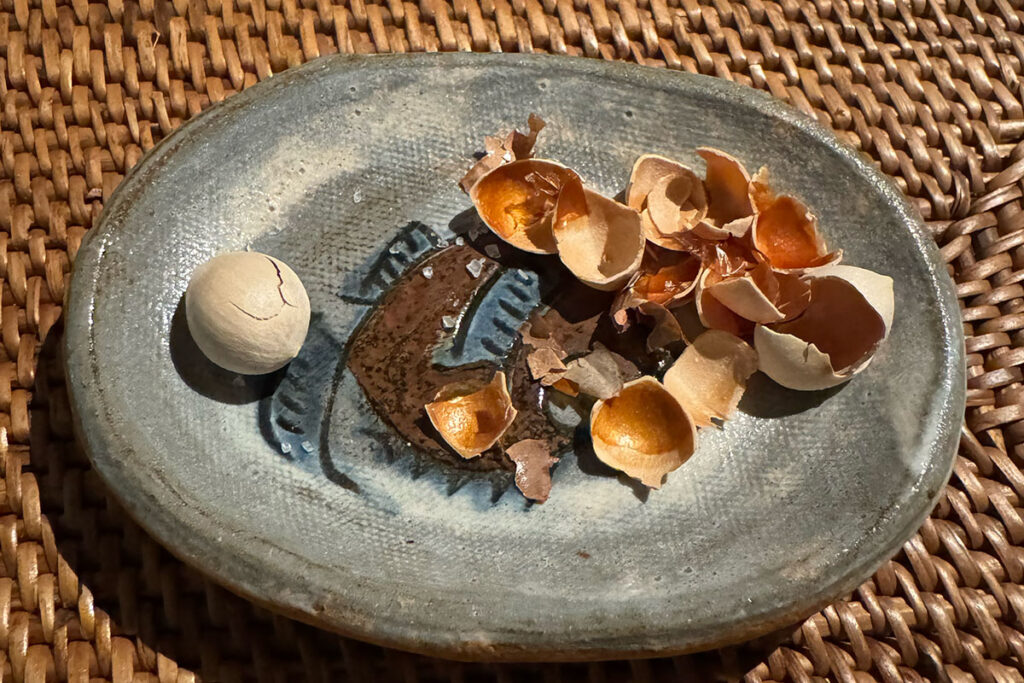 中から出てきたのは小さな銀杏。薄皮をむくと、黄金色に輝いてとてもきれい。