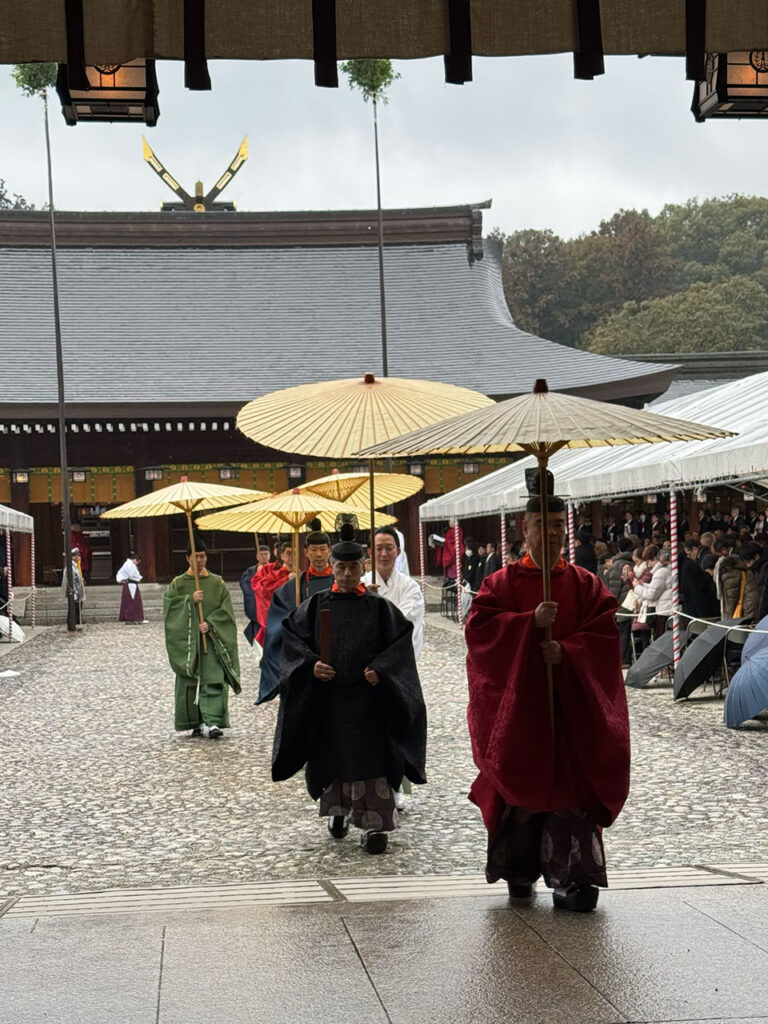 式典は11時から12時30分まで。小雨だったけど、境内には多くの参拝者が集まっていて、日本全国から約3,500人が来ていたそうです。