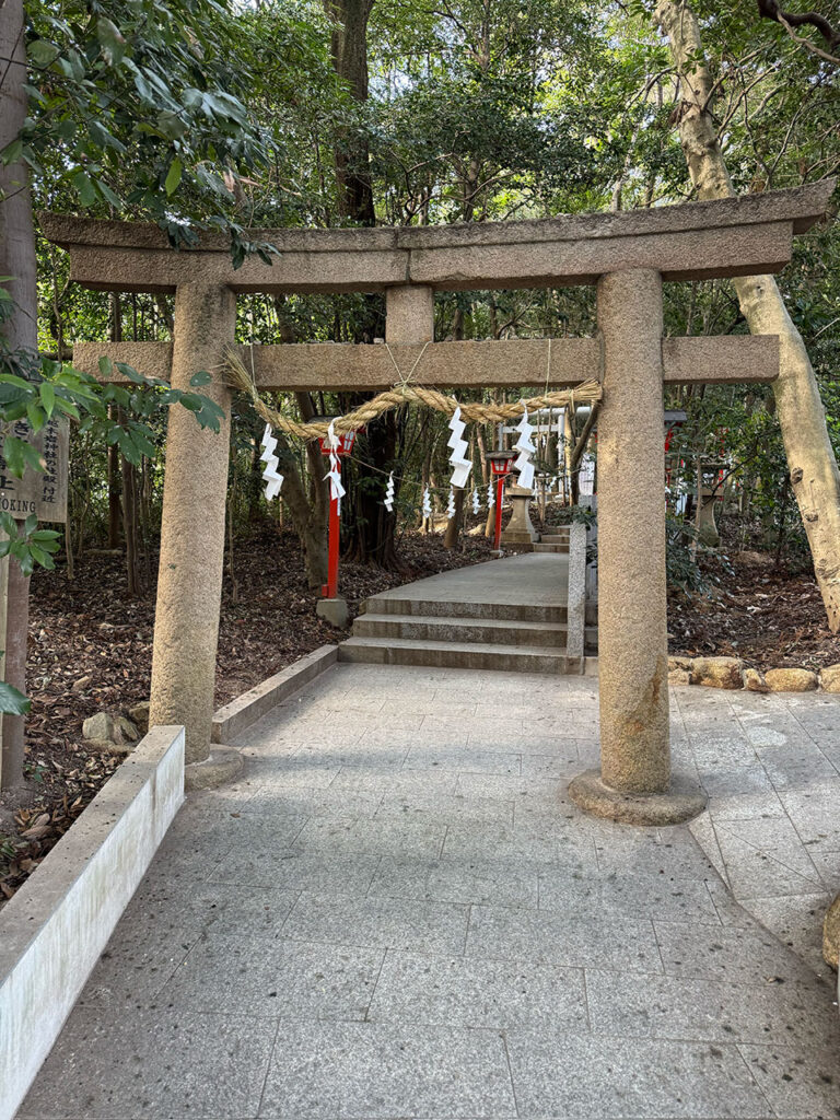 越木岩神社は、岩そのものが神。御祭神じゃなくて御神体。社殿が主役じゃない。ご神体は、甑岩(こしきいわ)という巨大な岩。しめ縄が岩や木、境内のあちこちに張られていて、「ここから先は、神の領域」という線が、目に見える形で引かれている。