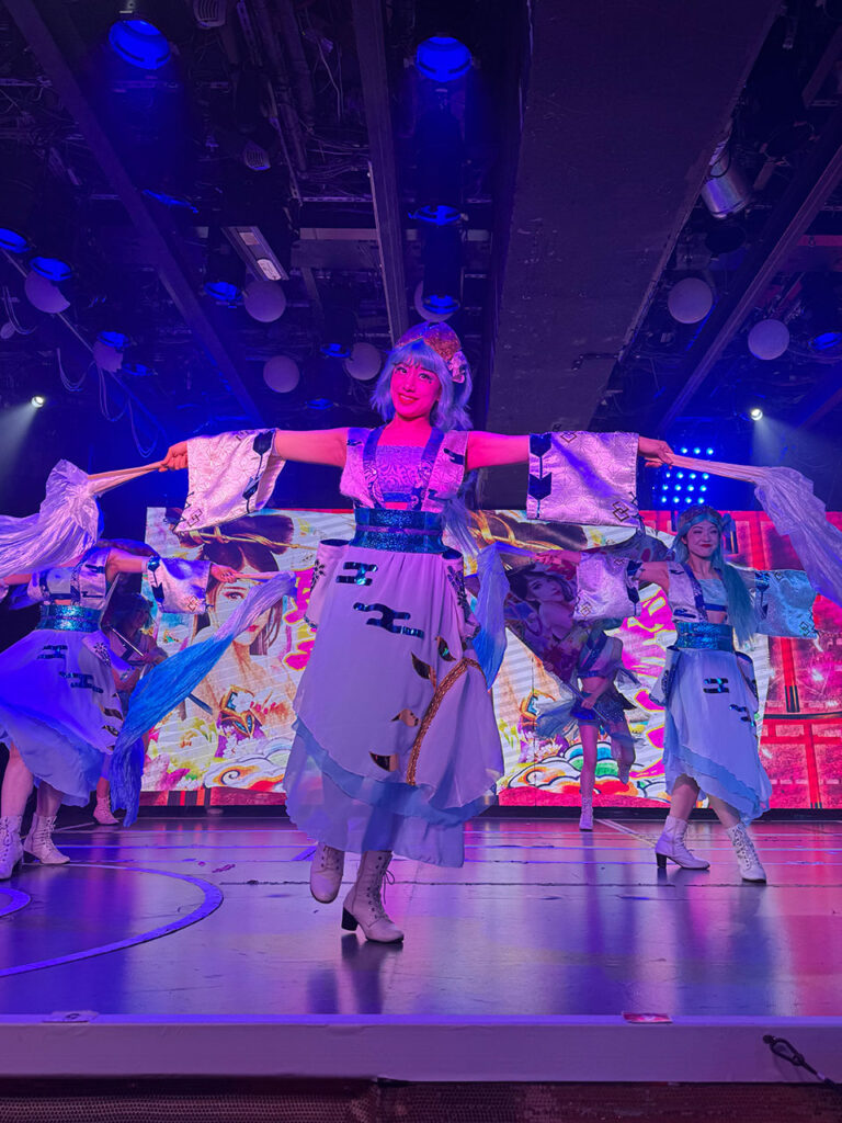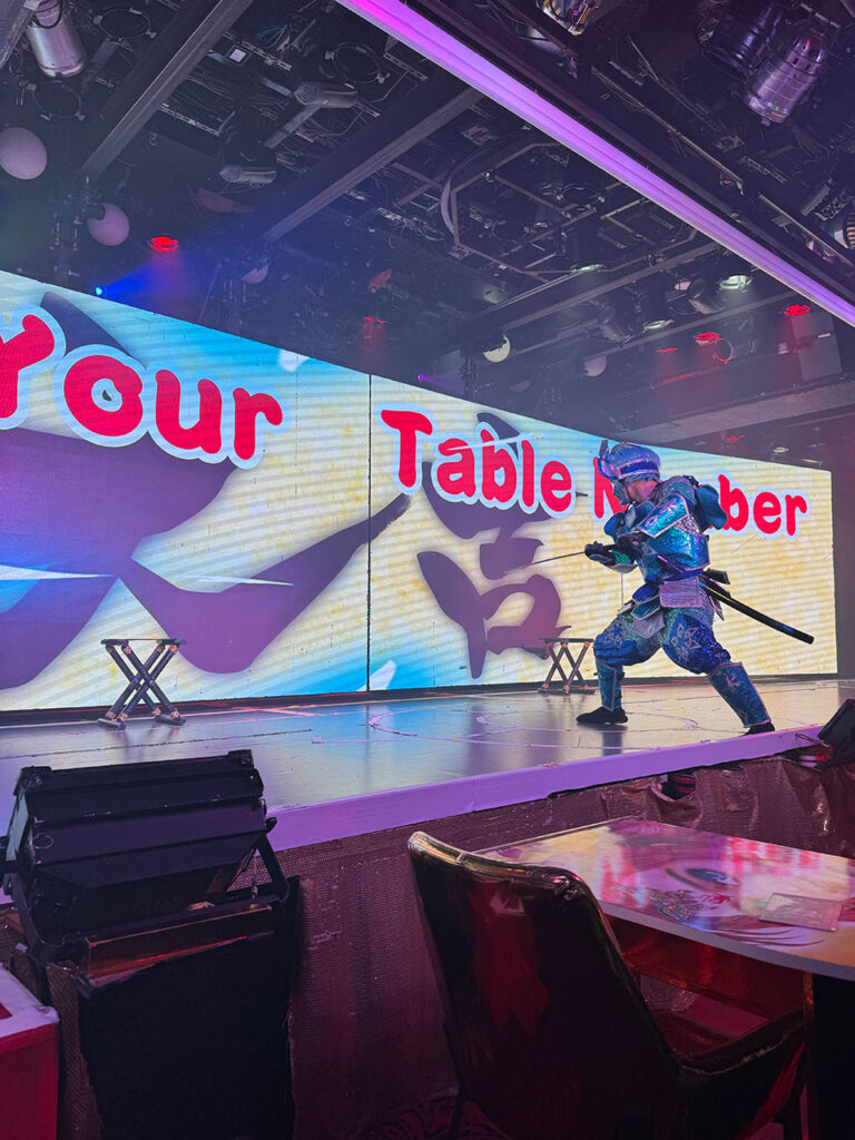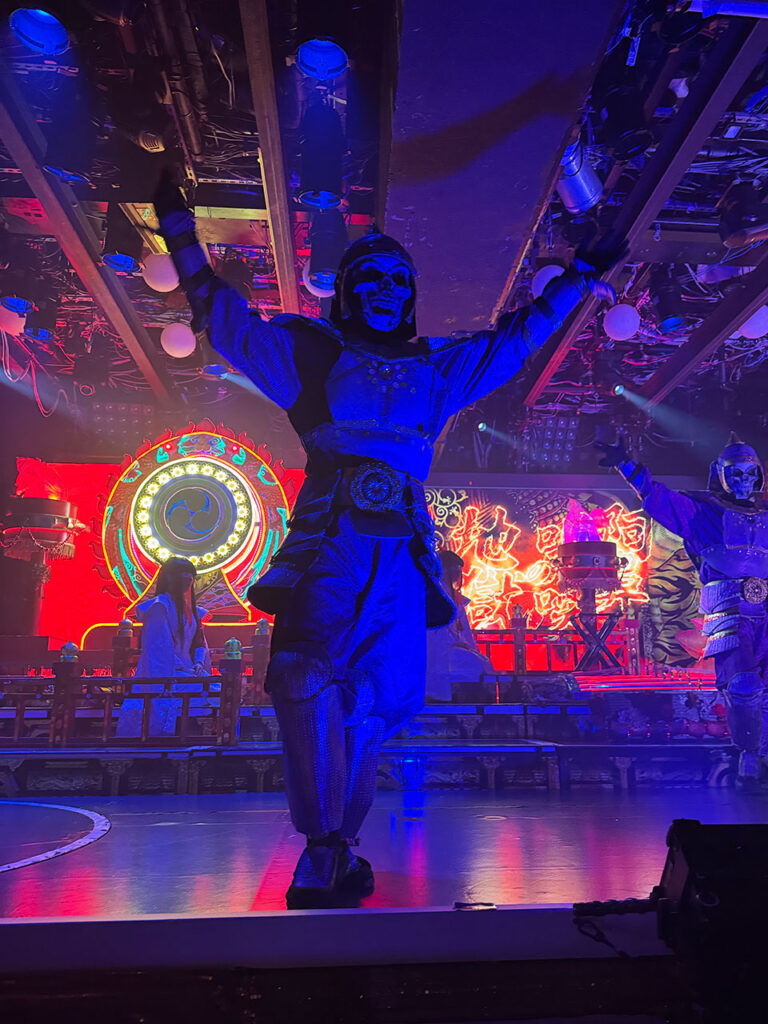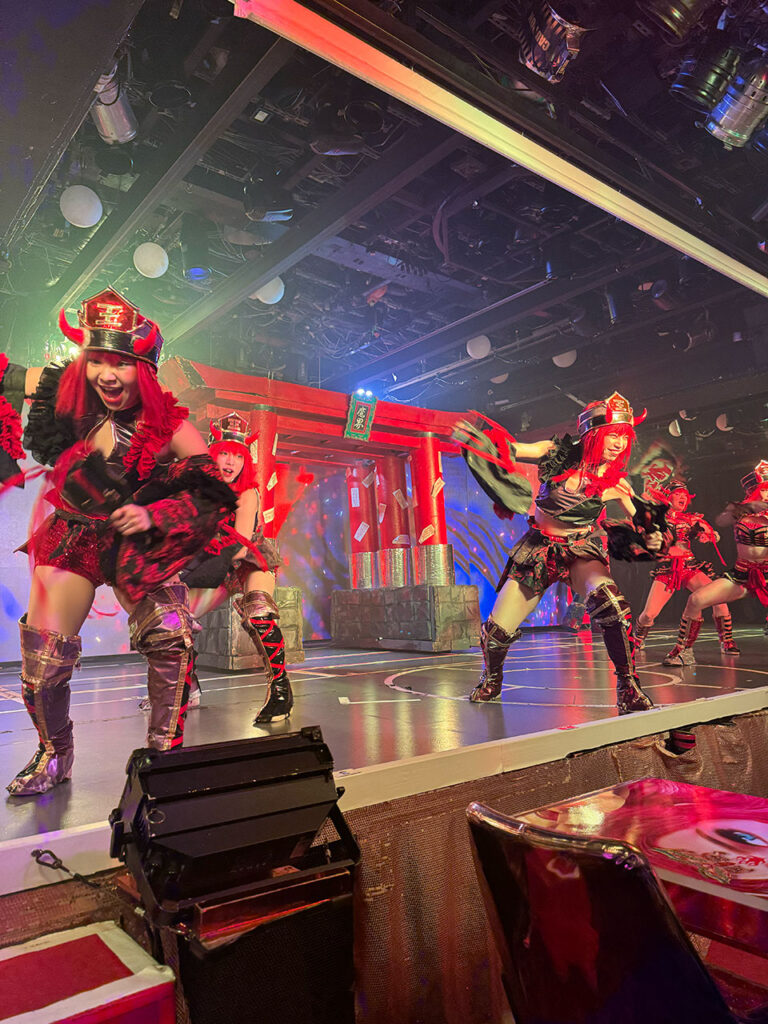 ギラギラした空間は相変わらず。だけど、サムライショーのような時代劇や殺陣はほとんどない。侍の衣装や鮮やかな着物をまとったダンサーたちが繰り広げるド派手なダンスショーでした。