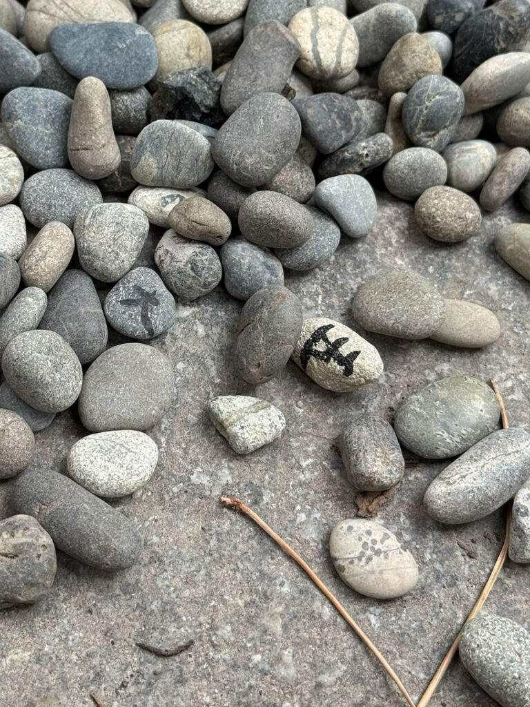 もう一つ面白かったのが、五所御前での石探し。玉砂利の中に「五」「大」「力」と書かれた3つの小石が混ざっていて、これらは体力・智力・財力・福力・寿力という5つの力を象徴している。3つそろえると願いが叶うと言われている。