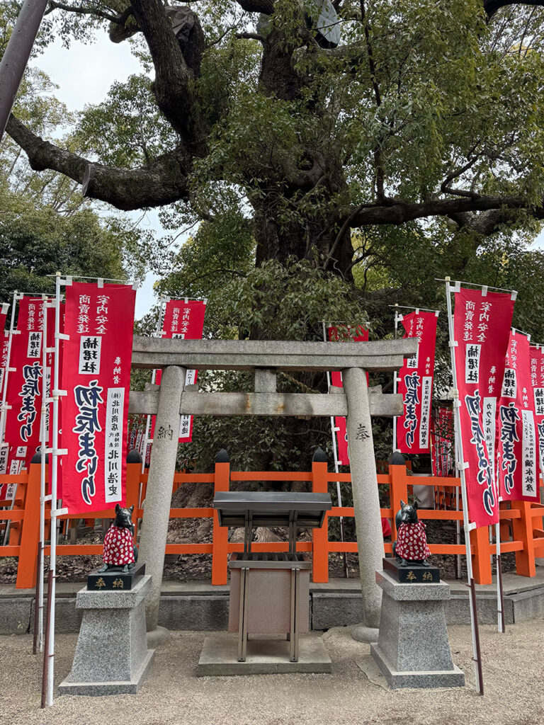 境内は広くて末社が多い。楠珺社(なんくんしゃ)は、楠の精霊を祀る小さな社で、静かで落ち着いた雰囲気。