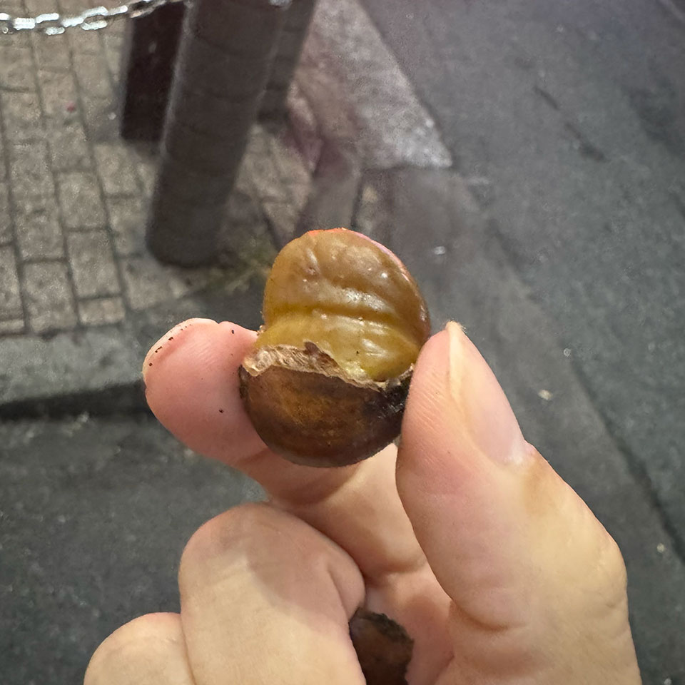 食べていると小さい頃よく栗を食べていたのを思い出した。昔は安かったそうです。栗のお菓子は興味ないけど栗はおいしい。渋谷の買い食いにぴったりの一品です。